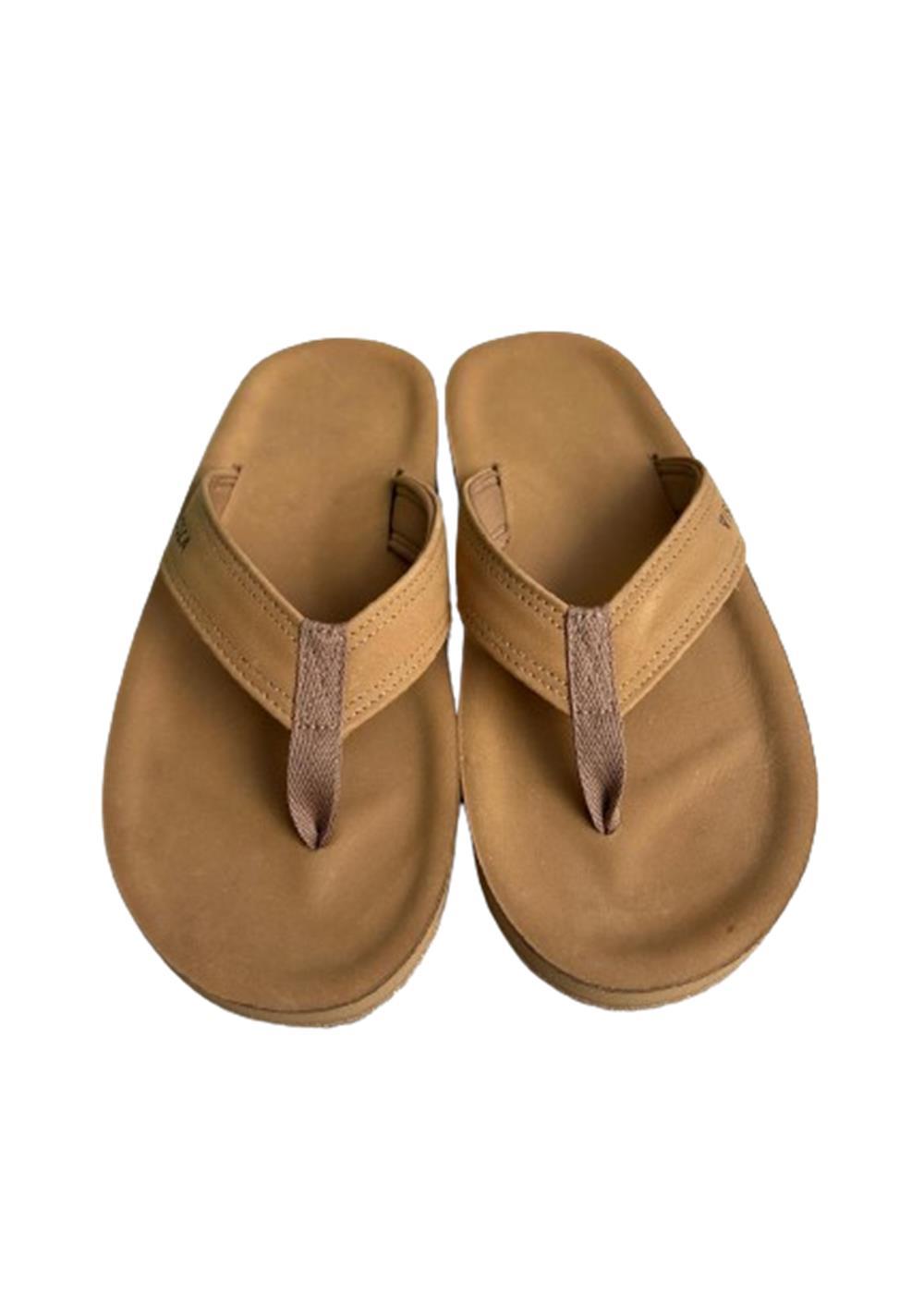 Open-toe comprising of 30% natural rubber & eva. Leather moulded foot bed to give you extra comfort. Includes leather strap with padding on the underside.