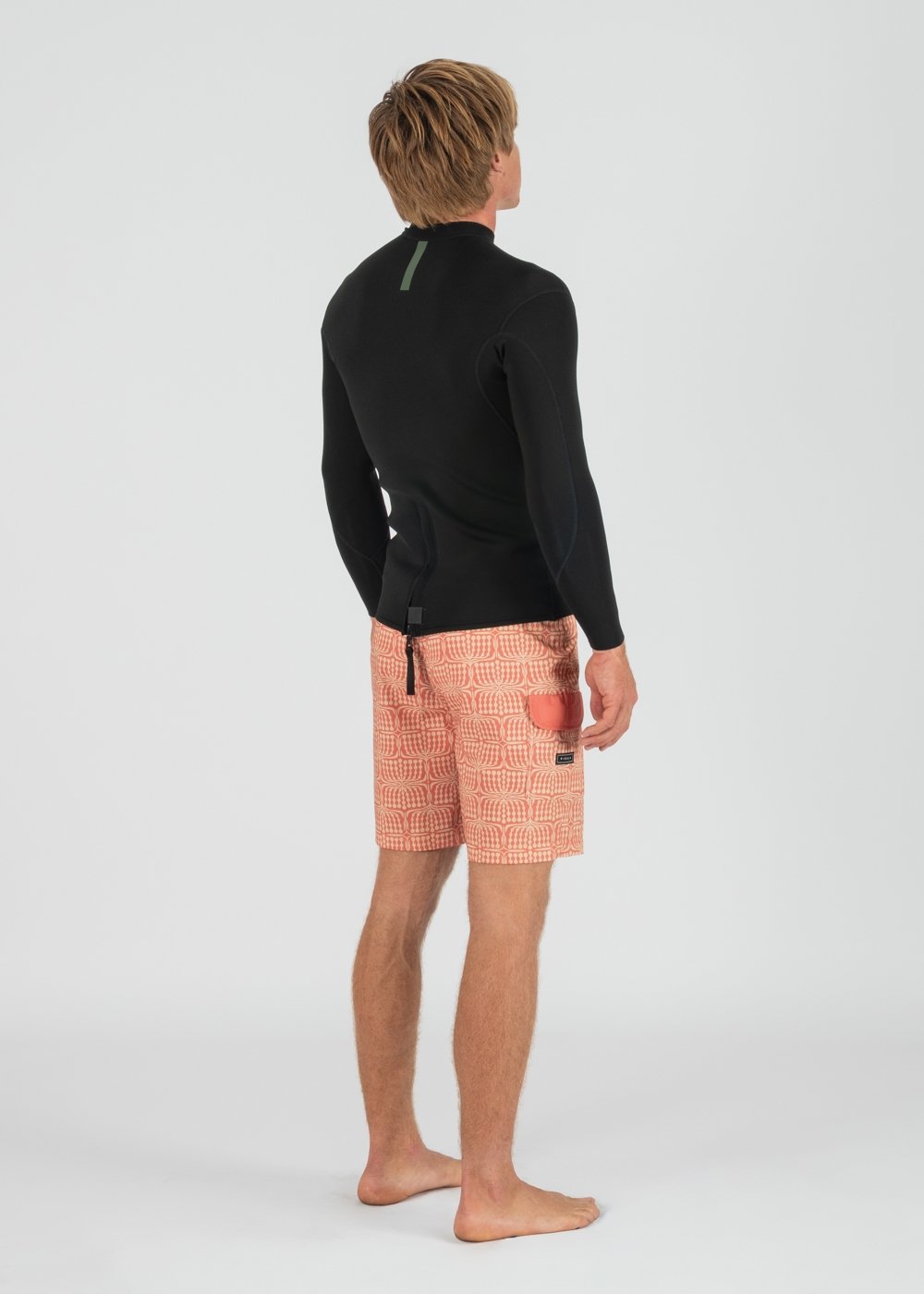 FEATURES Flat lock stitched short back zip, side toggle and boardshort-compatible secure cord.